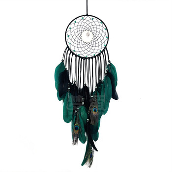 Atrapasueños decoración colgante de alta gama para colgar en la pared atrapasueños creativo cuentas luminosas pluma de pavo real viento artesanías naturales